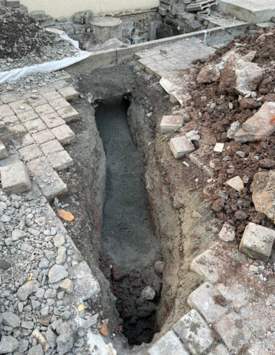 - Maçonnerie, fouilles pour raccordement de la ou des sondes et introductions dans la maison (entre 1 et 2 jours)