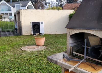 Installation d’une pompe à chaleur air/eau de marque ALPPAC, modèle AlpAZUR 100W Silent, (couplé à un accumulateur de chauffage de 200 Litres et un boiler pour L’EAU CHAUDE SANITAIRE de 300 Litres) d’une puissance calorifique de 10kW au point de dimensionnement de A-7°/W55°.